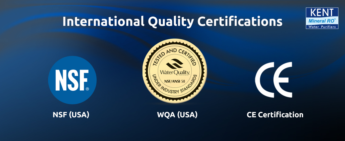 WQA Gold Seal Product Certification Program is a scientific method to assure the safety of the products. WQA provides an independent seal of approval on a variety of drinking water treatment products after rigorous laboratory tests, literature review and materials assessment. KENT received WQA Gold Seal Product Certification which confirms that water purifiers provide safe water for consumption.